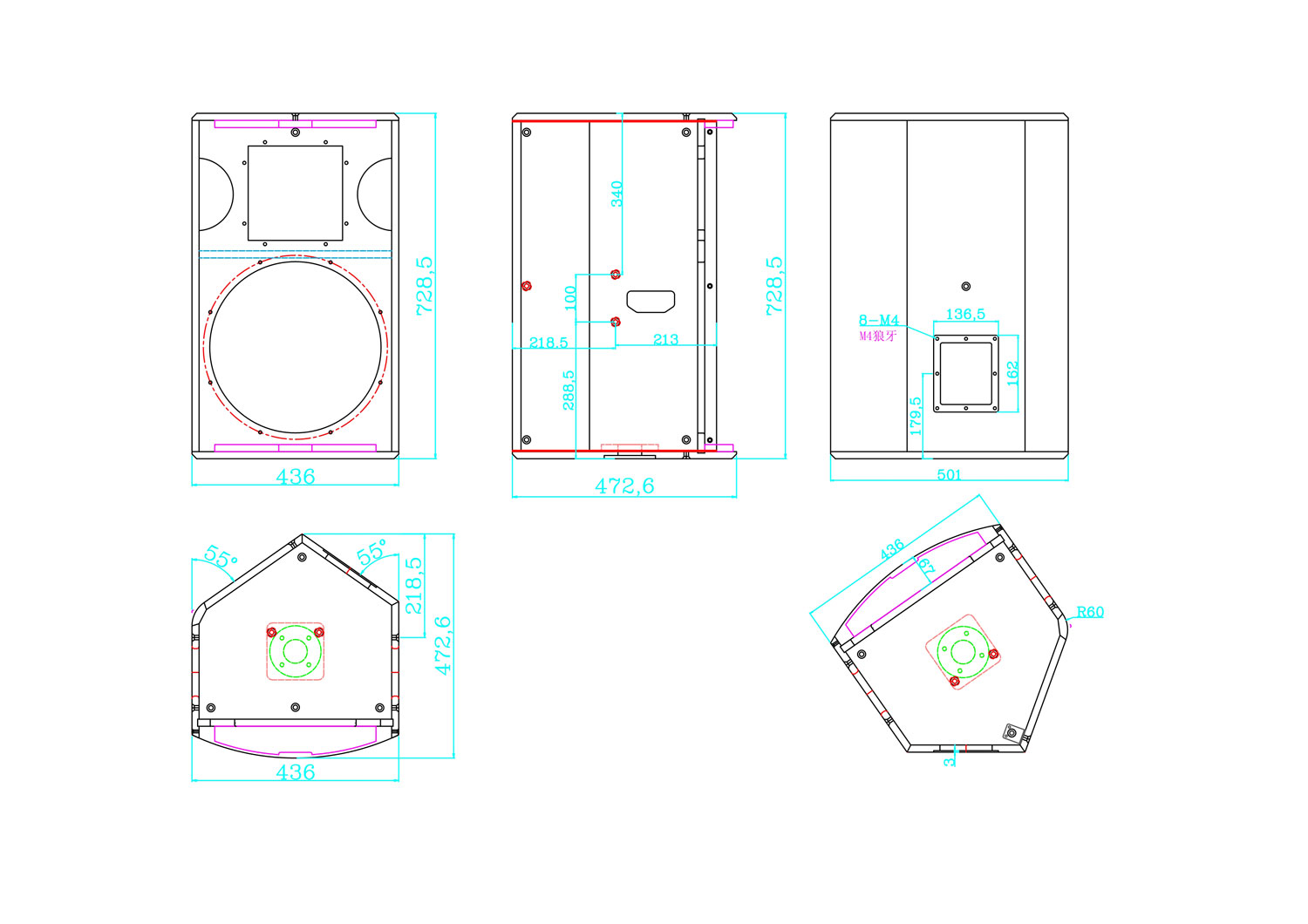 | 覆盖范围 Dispersion angle(-6dB): | 80°(H)x50°(V) |