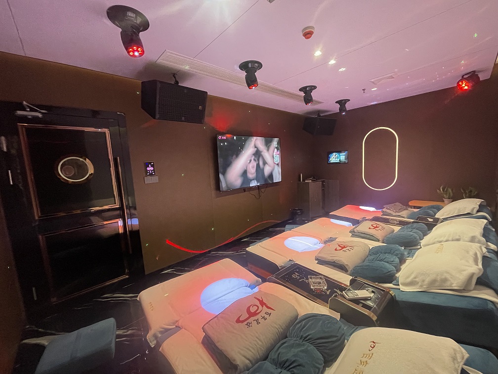 K歌沐足是湖南省人气极旺的娱乐场所,综合先进的管理,专业人才的配备,吸引大众眼球的时尚潮流装潢,为了给广大消费者呈献最完美的音效,经过对众多著名品牌的多轮严苛测试比较,湖南K歌沐足全面采用广州锐建电声国际提供的意大利宝龙PROEI专业音响。