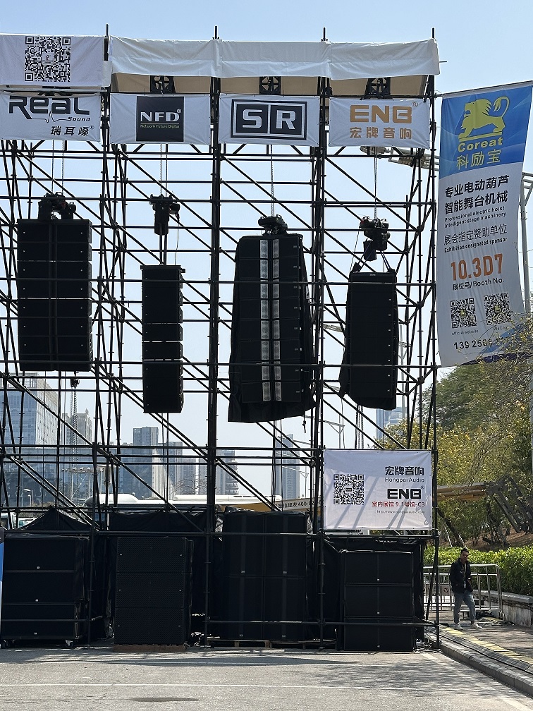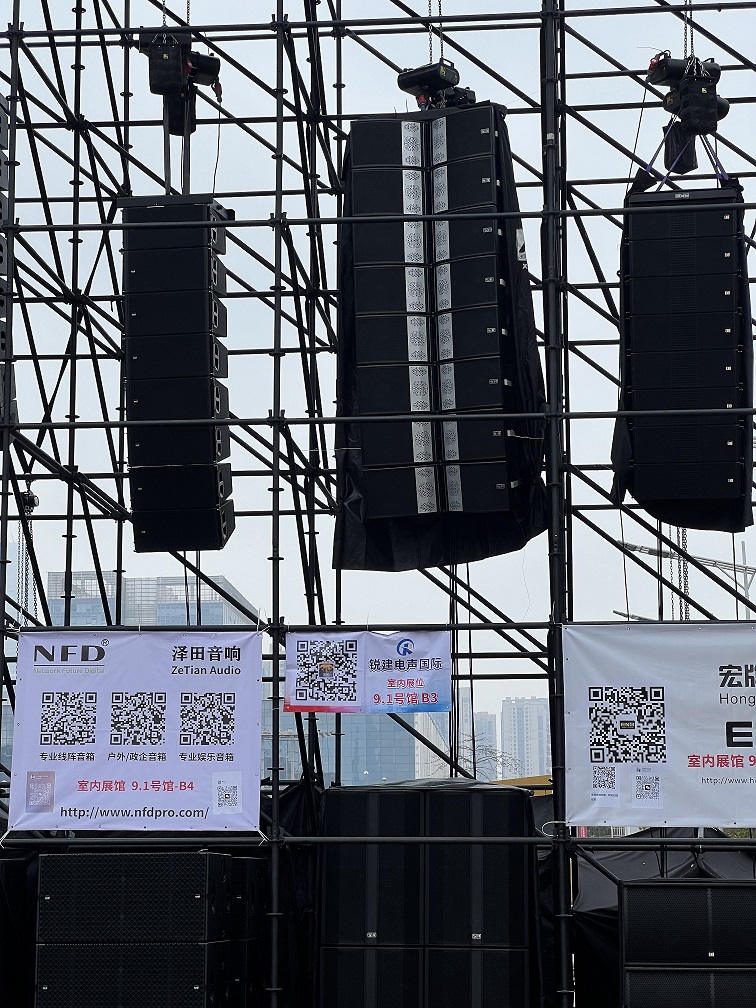 在演示户外线阵期间,锐建电声国际凭借穿透力极强的SR线阵高品质音响,以及强大的技术实力,赢得了现场观众的一致认可。SR的声音能带动现场观众不由自主地舞动起来,为现场观众带来了震撼的听觉体验,这就是SR独特的魅力,成为展会上备受瞩目的焦点。