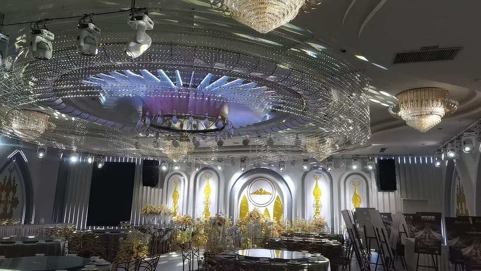 在卢浮宫宴会中心可以享受美食的同时,配合着华丽舒适的环境,伴随着美妙动听的歌声,使宾客用餐心情更愉悦。卢浮宫宴会中心采用的是锐建电声国际提供的意大利宝龙PROEI专业音响,呈献了极佳的音效。